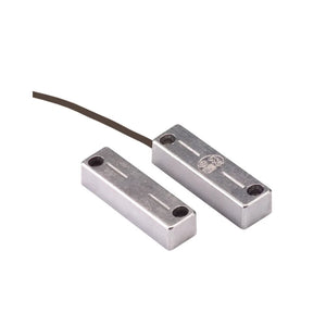 The ABUS MK4200 aluminum door/window contact is a robust magnetic contact for mounting on steel and metal doors. The contact consists of a magnetic reed switch and a magnet, which are mounted parallel to each other. The circuit of this normally closed (NC) door/window contact is closed in its resting state. If the distance between the reed switch and the magnet increases, an alarm is triggered. Thanks to its extremely robust aluminum housing, the contact is protected against damage from being driven over.