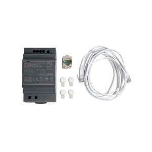 Kit mit 12V/4,5A Hutschienennetzteil, gewinkeltes Cat.6a Keystone Modul, 25 cm Flachband Netzwerkkabel (weiß) und Scotchlok UY2 Einzeladerverbindern
