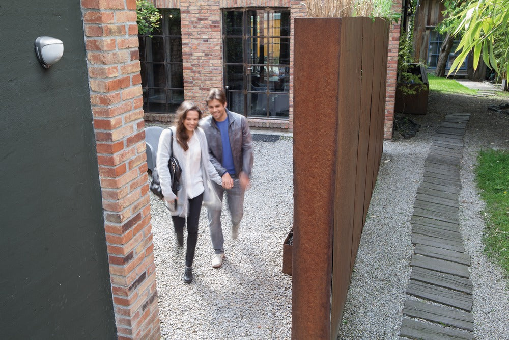 Die intergierten PIR-Elemente lassen sich um 180° schwenken und 90° neigen, sodass der Melder an nahezu jedem Ort eingesetzt werden kann. Der Blickwinkel des Außenbewegungsmelders beträgt 10° - 70°, die Erfassungsreichweite – je nach Montagehöhe – bis zu 30 Meter.