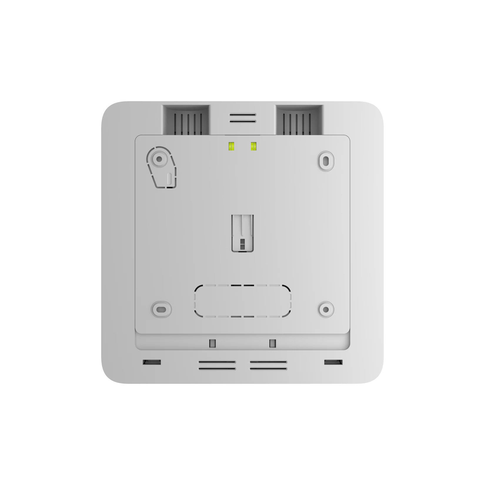 Der EN54 Fire ReX Jeweller wird direkt an das 110–240 V Stromnetz angeschlossen (Netzkabel nicht enthalten). Zusätzlich verfügt er über ein Fach für optionale Notstrom-Akkus: